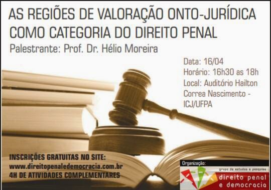 Informamos que já estão abertas as inscrições para a palestra “As regiões de valoração onto-jurídica como categoria do Direito Penal” do Prof. Dr. Hélio Moreira. Para garantir a sua vaga no evento, basta se inscrever neste link aqui.